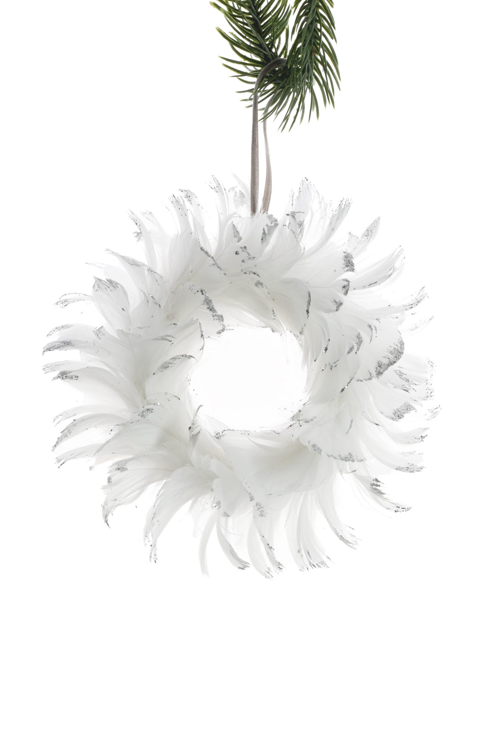 While perhaps strange, there’s certainly nothing more guaranteed to match your Christmas Tree than a Tree-themed ornament! We think this one will look just perfect on yours. With a natural charm all its own, we know you’ll appreciate this Hanging Glittery Feather Wreath Ornament from our Nature & Floral collection. With that perfect wintery White gleam, it’s just the thing for when you want a homey yet modern touch.