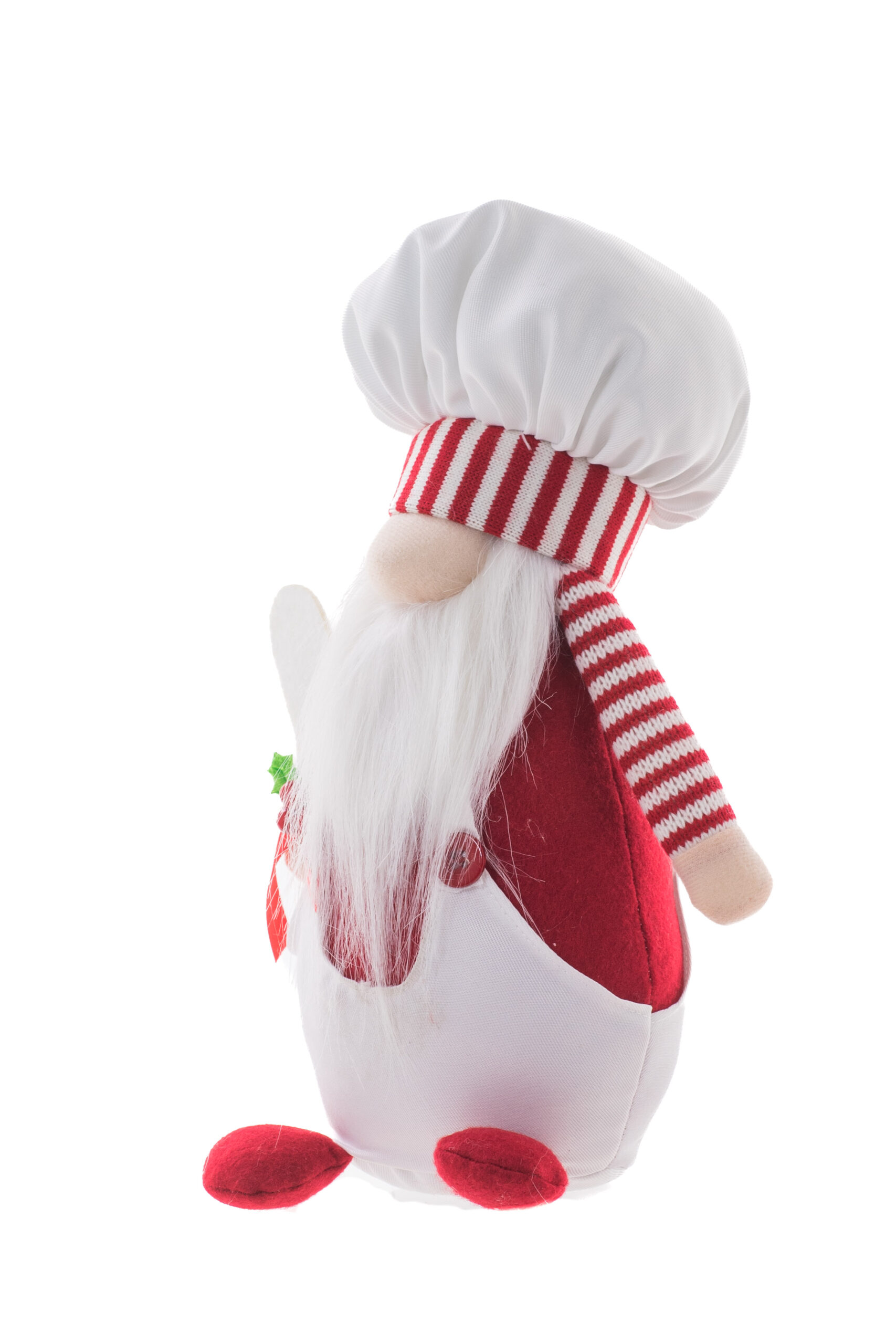 White/Red Fabric Standing Chef Santa Gnome holding Spatula