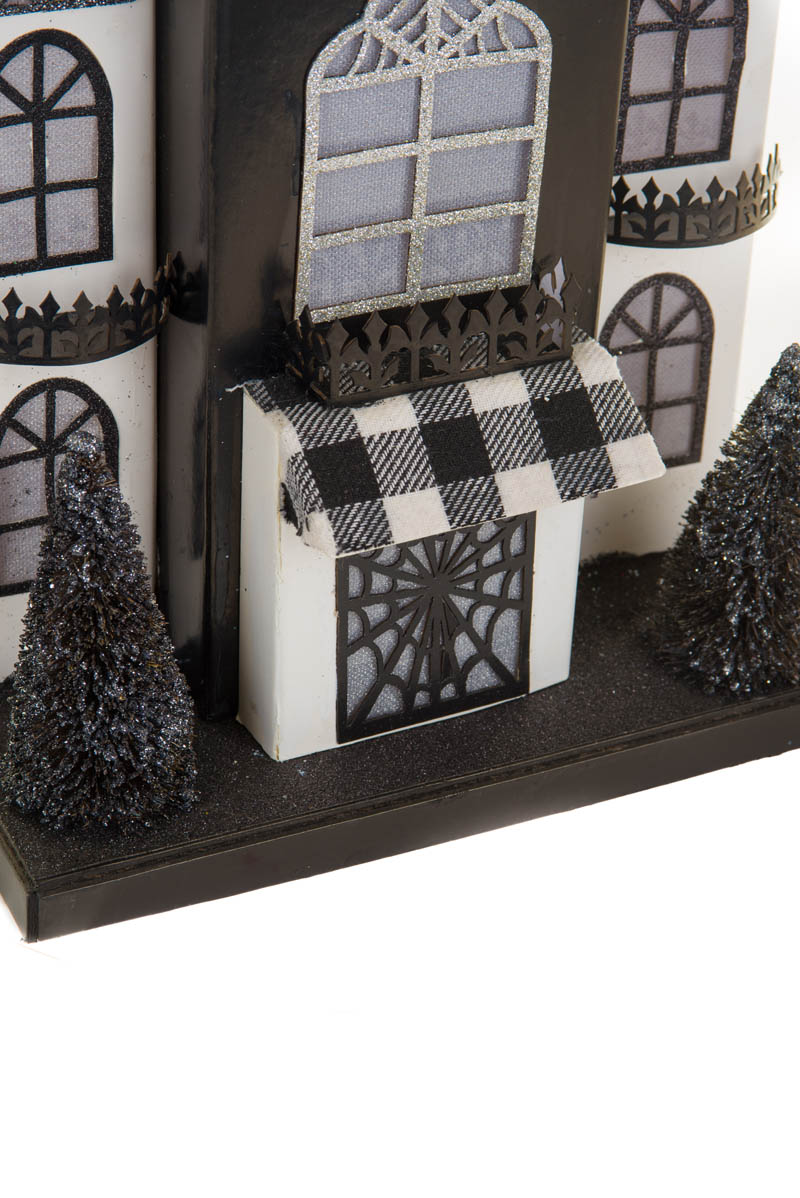 We all love horror films and haunted houses, but not everything that goes bump in the night needs to make your skin crawl. Here at Starlight, we think there’s plenty of room for the friendliest ghosts, fluffiest black cats, and greatest pumpkins you ever did see right there with the best of ’em. For those who want some cute along with their spook, this LED Haunted House is for you. For when very, very dark gray just isn’t enough, Our Eerie Black And White Haunted House Is Sure To Delight.