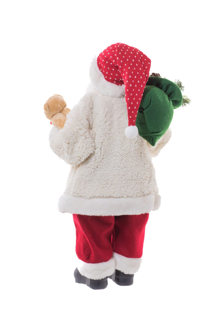 SKU: S24140RWWhite/Red Fabric Standing Smiling Santa holding Teddy Bear
