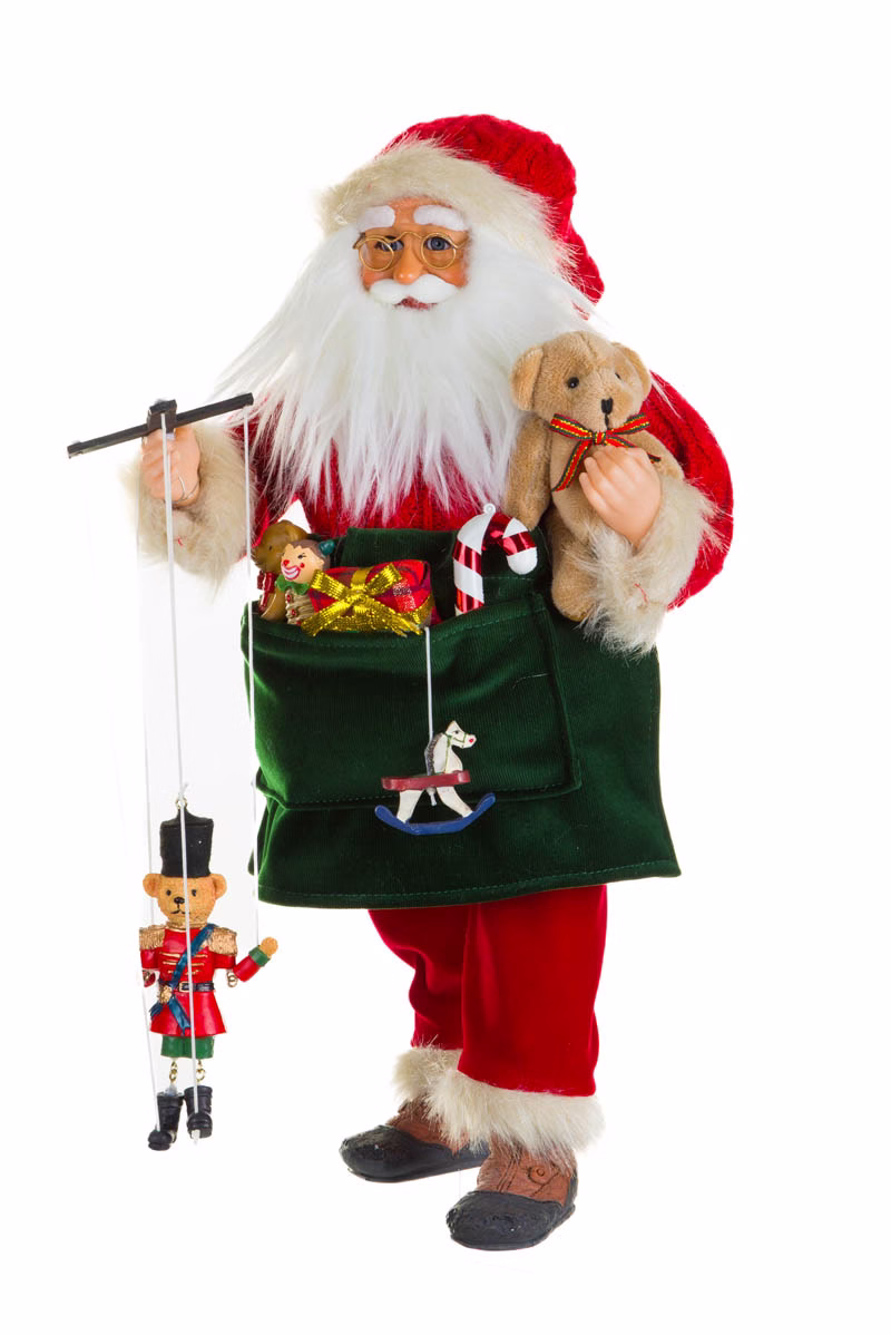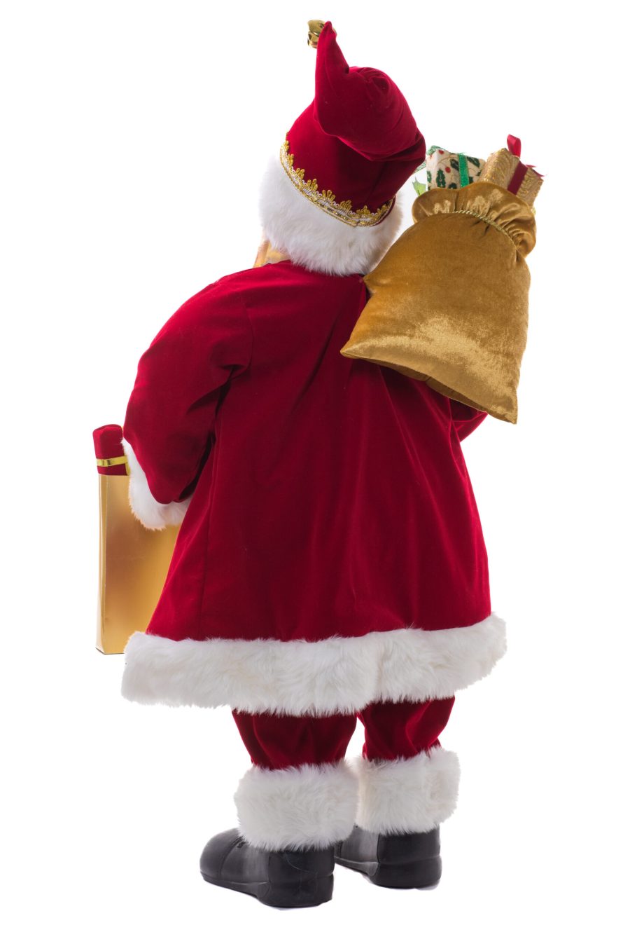 SKU: S3734RRed/White Fabric Standing Shopping Santa holding Shopping Bag