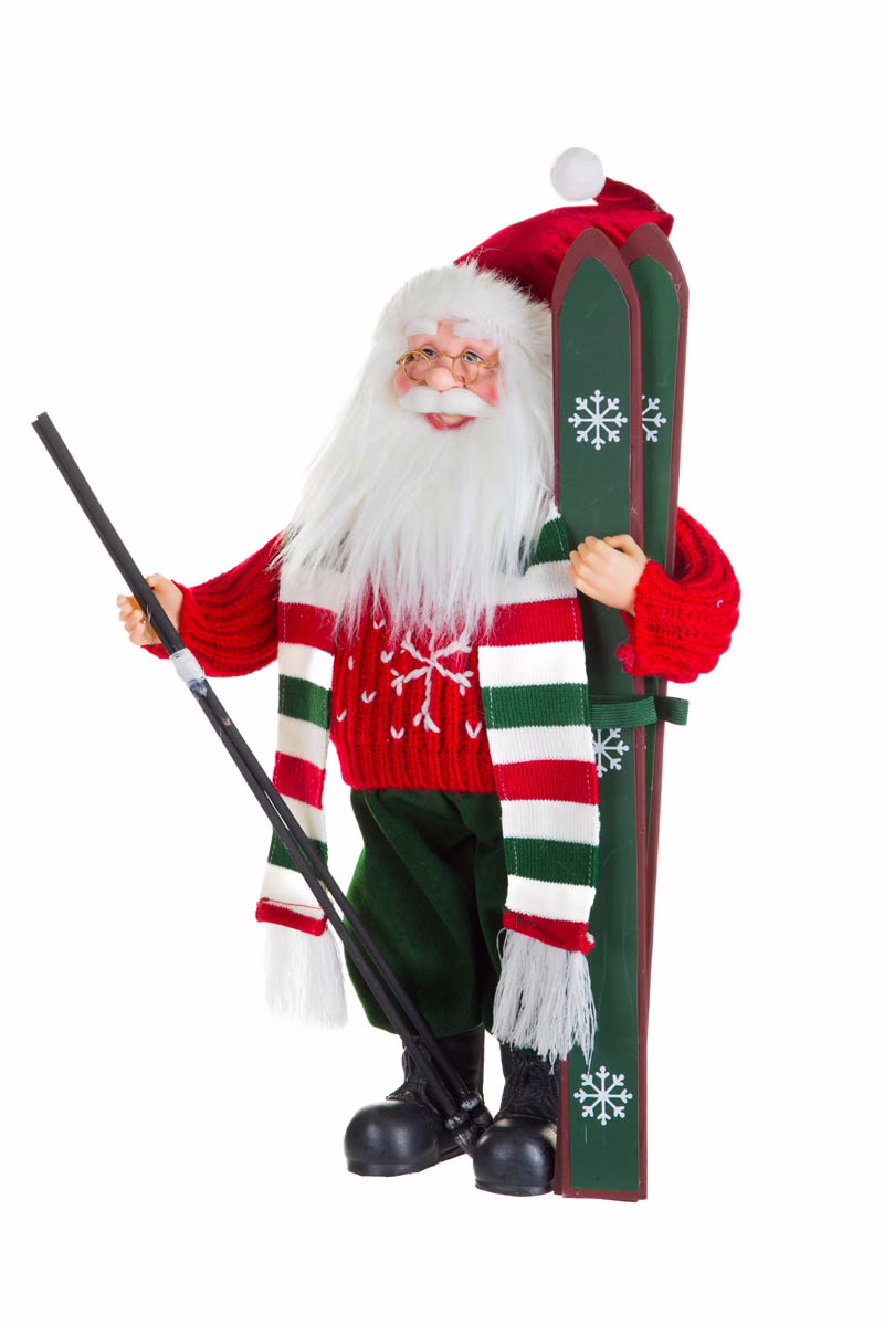 SKU: CL2062Sitting Red and White Snowflake Alpine Santa with Skiis and Boots with the Fur