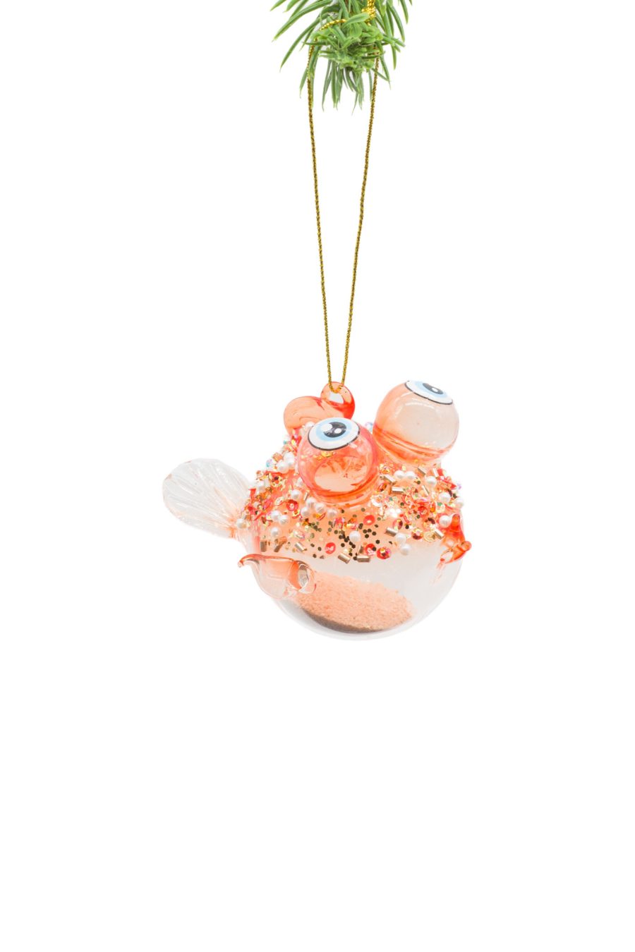 SKU: DK3845Orange/Clear Glass Hanging Friendly Blowfish Ornament with Sandy Filling